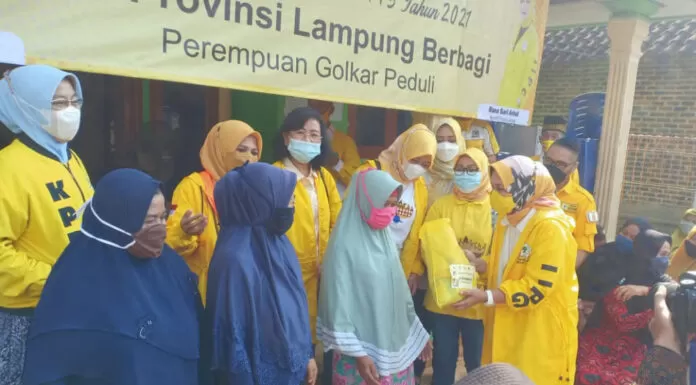 Bandar Lampung, Terkini.id - Ketua Ikatan Istri Partai Golkar (IIPG) Provinsi Lampung Riana Sari Arinal menyerahkan bantuan paket sembako di dua lokasi di Kota Bandarlampung, Kamis 22 April 2021.